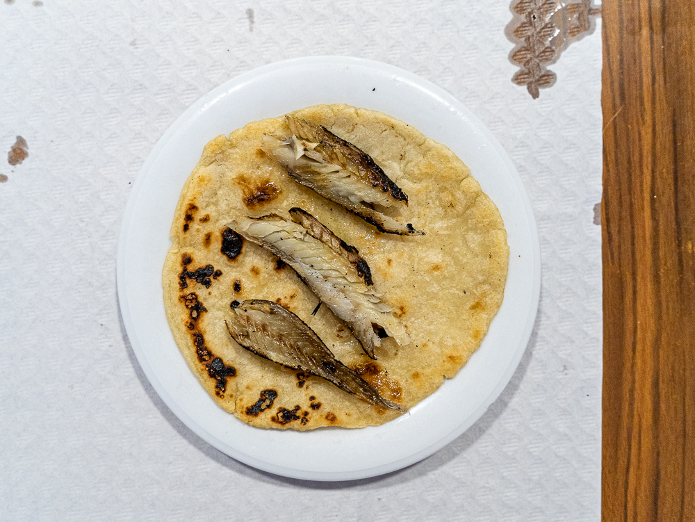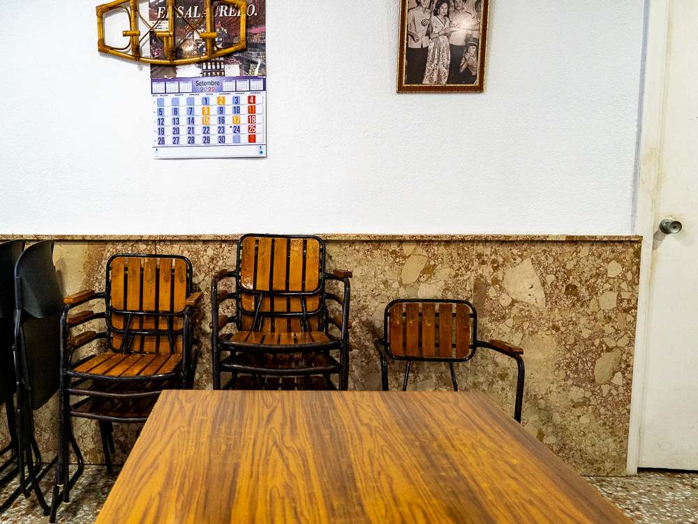 Entramos desconcertados, subimos las escaleras sin saber si estaba abierto e incluso si estábamos en el lugar correcto, estaba vacío, medio a oscuras y con una sola mesa larga de jubilados, me sentí como quien se cuela en una fiesta a la que no ha sido invitado. El resto de mesas estaban vacías y desprovistas de sillas, cogimos unas de una torre en la que estaban apiladas. En cuanto nos pusieron el mantel de papel todo empezó a cuadrar, aunque no tenía ni idea del funcionamiento ni qué pedir, fue fácil bastante sencilla: solo tienen coques.