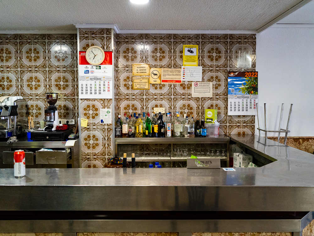 Un bar muy sencillo, con mucha solera. Un salón muy amplio, con una barra metálica a la derecha. Las mesas estaban sin montar y las silla apiladas.