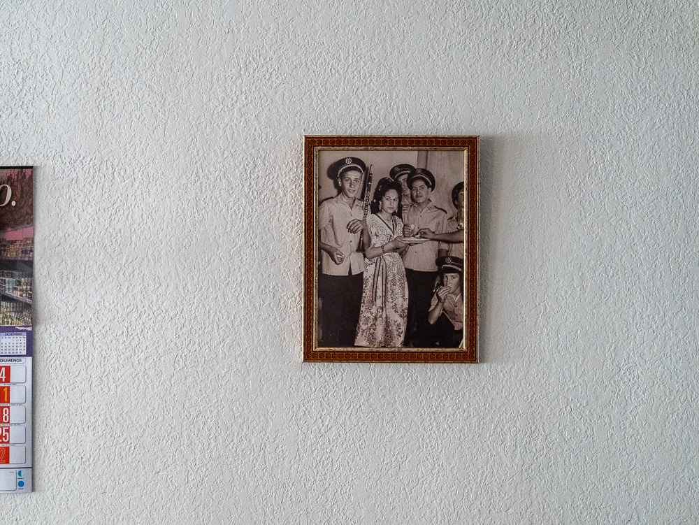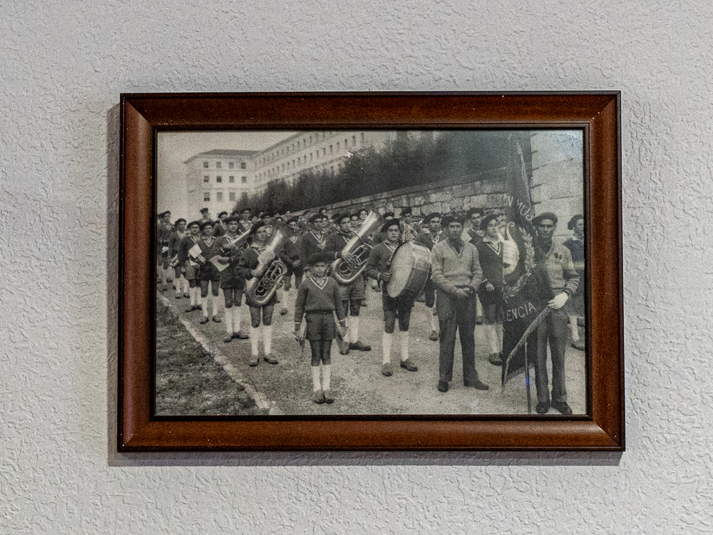 En las paredes tienen fotos de los dueños cuando eran jóvenes y de la banda donde tocaban.
