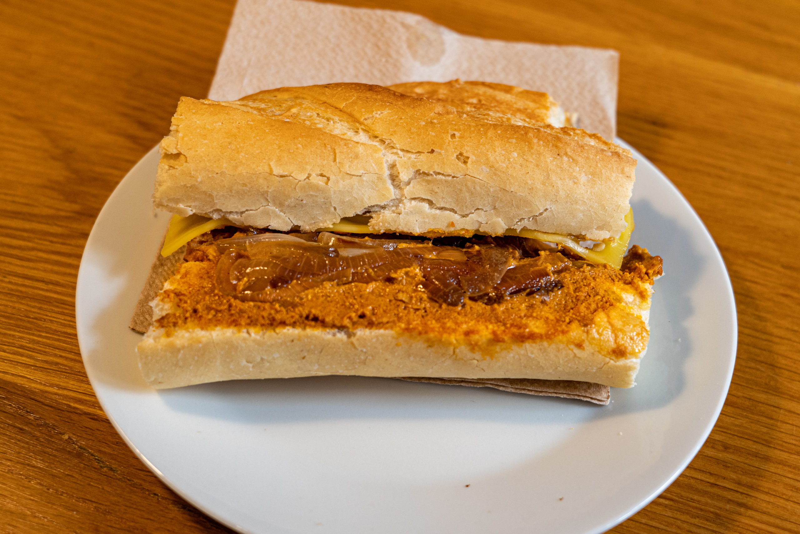 Por otro lado, también probé su almussafes vegano, estaba muy bueno, creo que es el almussafes vegano más equilibrado que he probado. Hasta la fecha todas las sobrasadas veganas que he probado son muy ácidas y fuertes, en alguna ocasión me han dejado la boca resentida tras tomarlas, pero en este caso estaba todo, para mi gusto, en su justa medida. Solo tengo que decir que si el pan hubiera sido de otra clase el bocata hubiera sido un espectáculo.