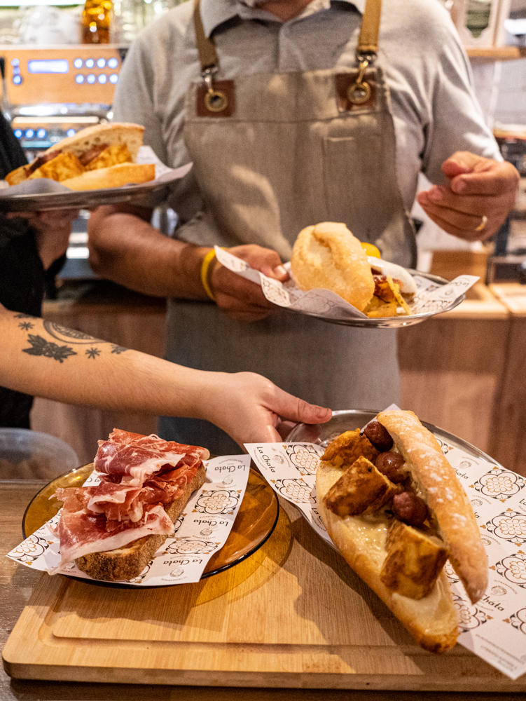 El concepto me parece brutal porque tanto te puedes pedir un bocata/plato de su carta, como que puedes pedir que te descorchen un vino o ponerte fino a conservas y latas gourmet.