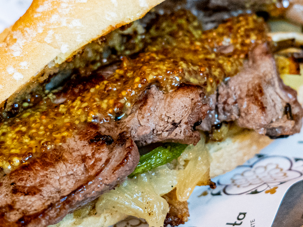 Un bocadillo espectacular, no únicamente porque el pan es bueno, la carne de calidad y con el grosor perfecto para que en la plancha quede en su punto y con una buena reacción de Maillard, si no porque sus otros ingredientes son muy sabrosos: una patata frita a lo pobre en su punto y unos tomates secos de un llauro de la zona que le otorgan al bocata un punto ácido y extra de sabor.